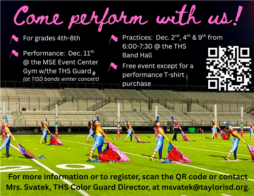 Christmas Color Guard Camp - This is for students from 4th grade to 8th grade.